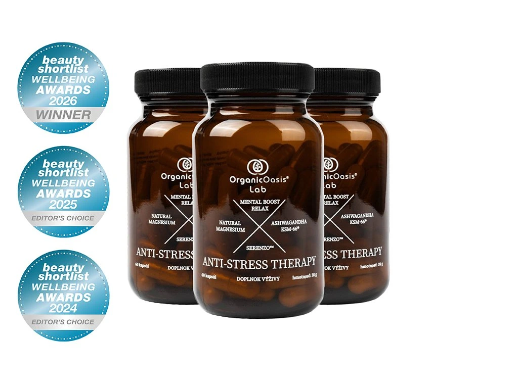 ANTI-STRESS THERAPY je víťazom svetovej súťaže The Beauty Shortlist Wellbeing Awards 2026, v kategórii BEST SUPPLEMENT TO ENHANCE RELAXATION/REDUCE STRESS. V roku 2024 a 2025 získalo v tejto súťaži aj ocenenie Editor's Choice. Ocenenia v The Beauty Shortlist Wellbeing Awards, sú pre nás veľmi významné, nakoľko ide o súťaž, ktorá je známa svojou transparentnosťou a je ostro sledovaná odborníkmi z odvetvia, novinármi, či ostatnými beauty nadšencami a spotrebiteľmi.